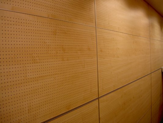 Перфорированные панели Sliding Decor представляют элитный класс акустических материалов, так как кроме хорошего влияния на акустическую среду, они позволяют создать изысканный дизайн помещения, благодаря отделке натуральным шпоном ценных пород дерева или окраски в любой цвет каталога RAL.