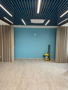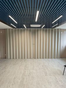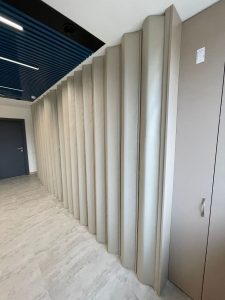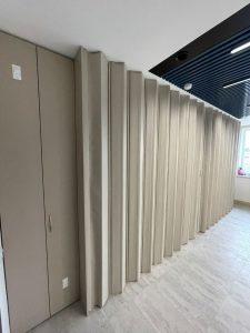 - Функциональность и практичность: Раздвижная конструкция позволяет легко и быстро трансформировать пространство офиса, создавая отдельные зоны для работы, переговоров или отдыха. В сложенном состоянии перегородка практически не занимает места, а в разложенном – эффективно разделяет помещения, обеспечивая необходимую звукоизоляцию.