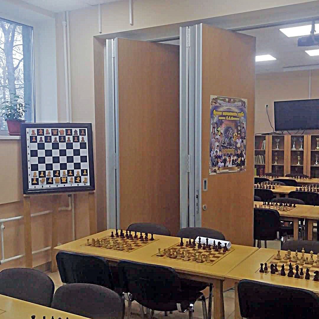 Была изготовленная раздвижная стена для клуба любителей шахмат.