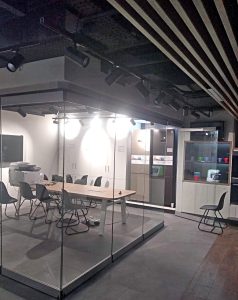 - Функциональность: Раздвижная конструкция обеспечивает гибкость использования пространства. В рабочее время стена может быть полностью открыта, объединяя зону переговоров с общим офисным пространством, а в случае необходимости – легко и бесшумно закрывается, обеспечивая необходимую приватность. Это особенно важно для проведения конфиденциальных встреч или телефонных переговоров.
