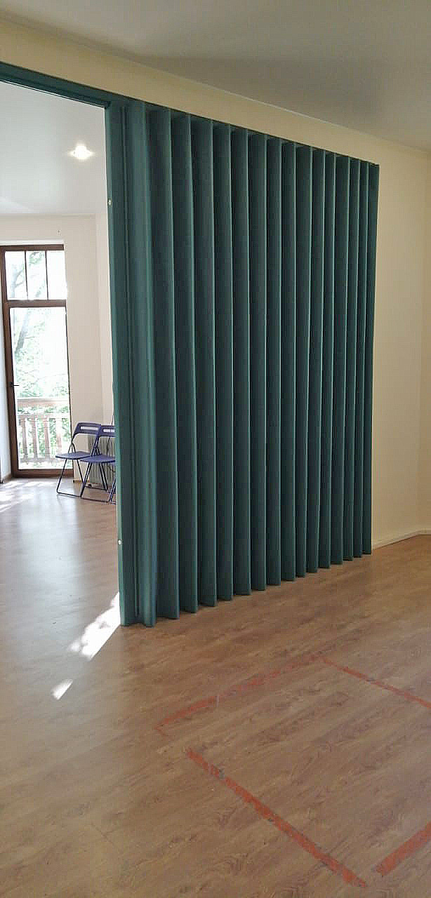Зеленая раздвижная мягкая перегородка – это не просто функциональный элемент, но и стильный акцент в вашей квартире. Она поможет: