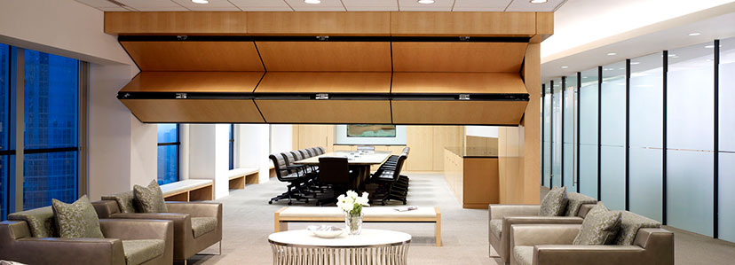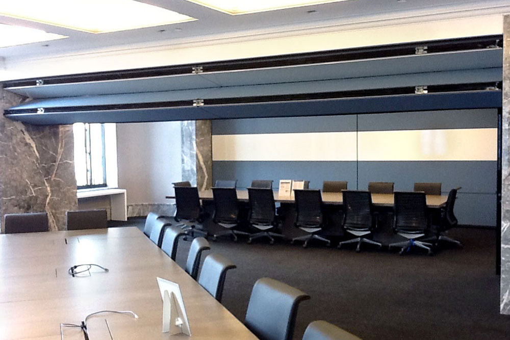 Раздвижная перегородка приводится в движение посредством электрического мотора, а также системы натяжителей, складывающих и раскладывающих пантограф и поднимающих панели в парковочную зону в уровне подвесного потолка. При этом панели становятся полностью горизонтально. У Подъемной стены система полностью автоматическая и управляется одним нажатием пальца на выключатель, который расположен рядом с раздвижной перегородкой на стене.