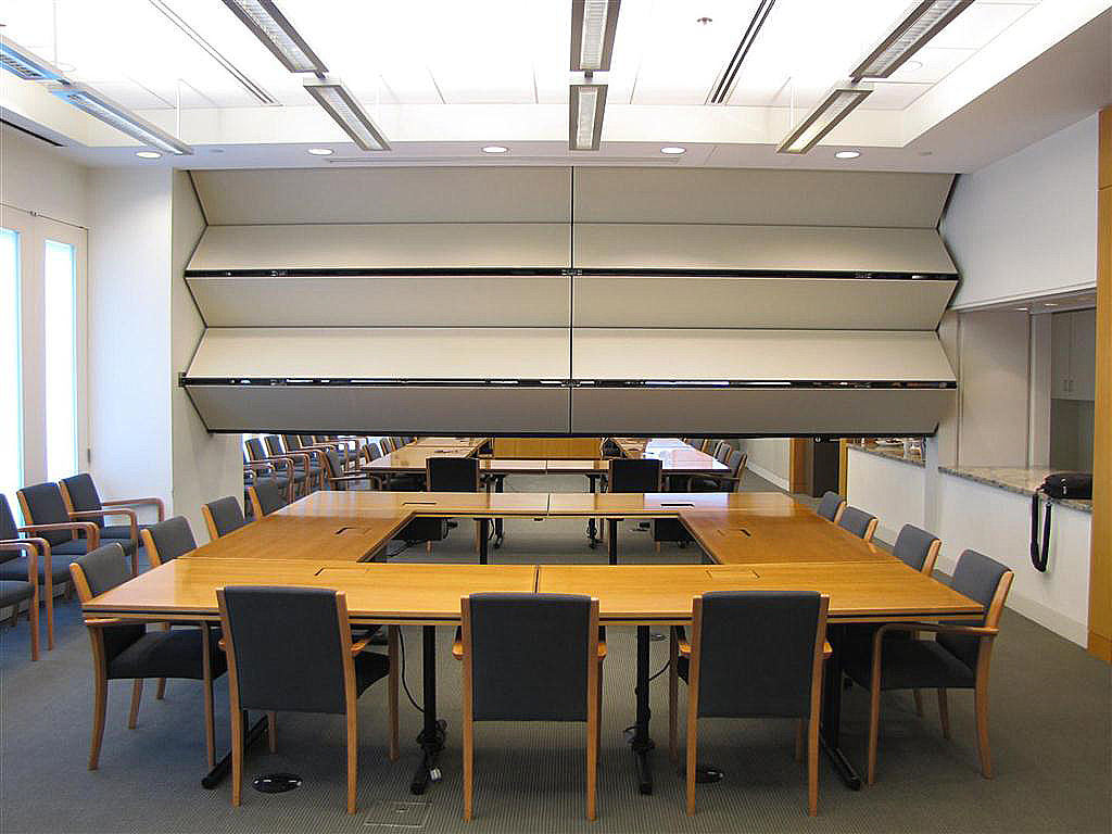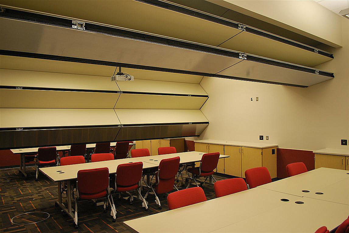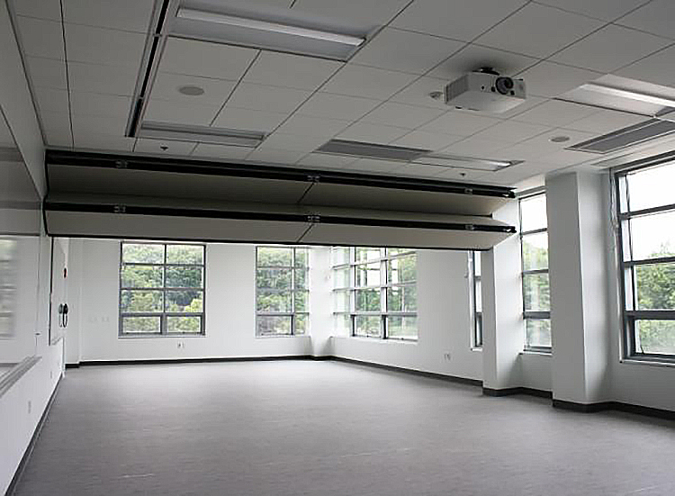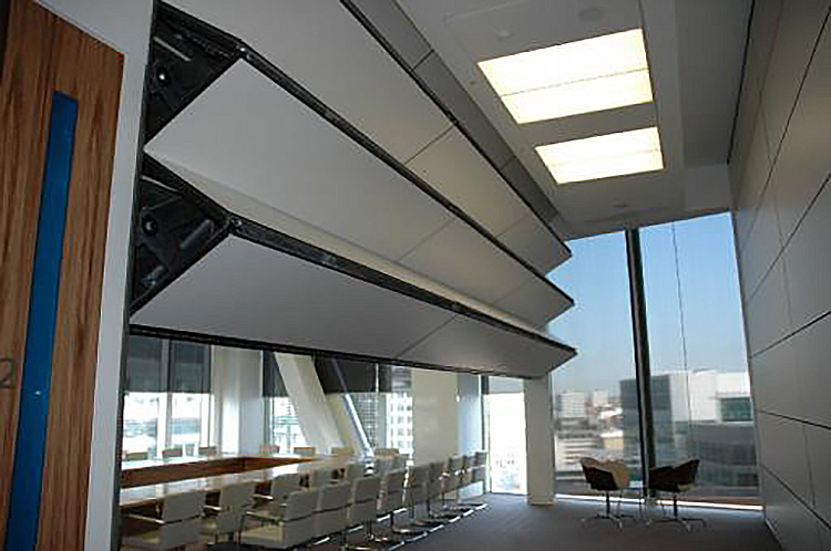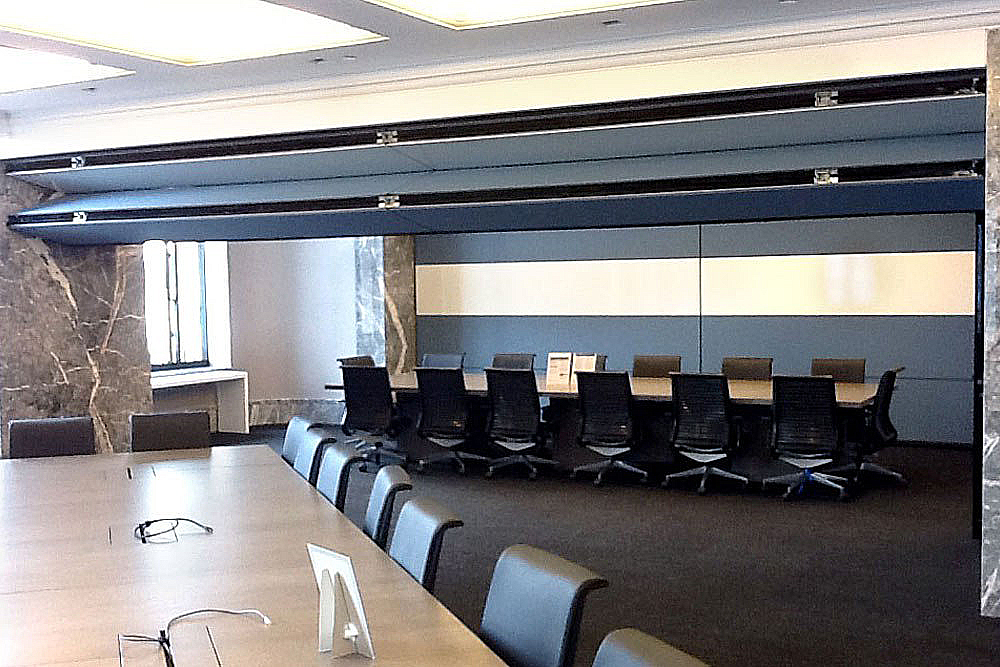 Раздвижная перегородка приводится в движение посредством электрического мотора, а также системы натяжителей, складывающих и раскладывающих пантограф и поднимающих панели в парковочную зону в уровне подвесного потолка. При этом панели становятся полностью горизонтально. У Подъемной стены система полностью автоматическая и управляется одним нажатием пальца на выключатель, который расположен рядом с раздвижной перегородкой на стене.