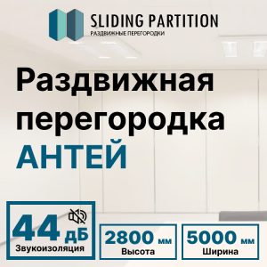 Раздвижная перегородка АНТЕЙ – Ширина 5000 мм – Высота 2800 мм – Звукоизоляция 44 дБ – Дверей 0