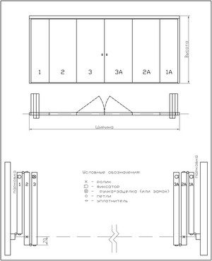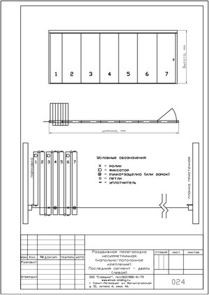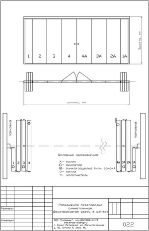 Симметричная парковка раздвижной перегородки – расположение сегментов симметрично относительно оси направляющей.